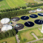 ROTTERDAM, THE NETERLANDS - Aerial view of a water treatment plant in the Port of Rotterdam.